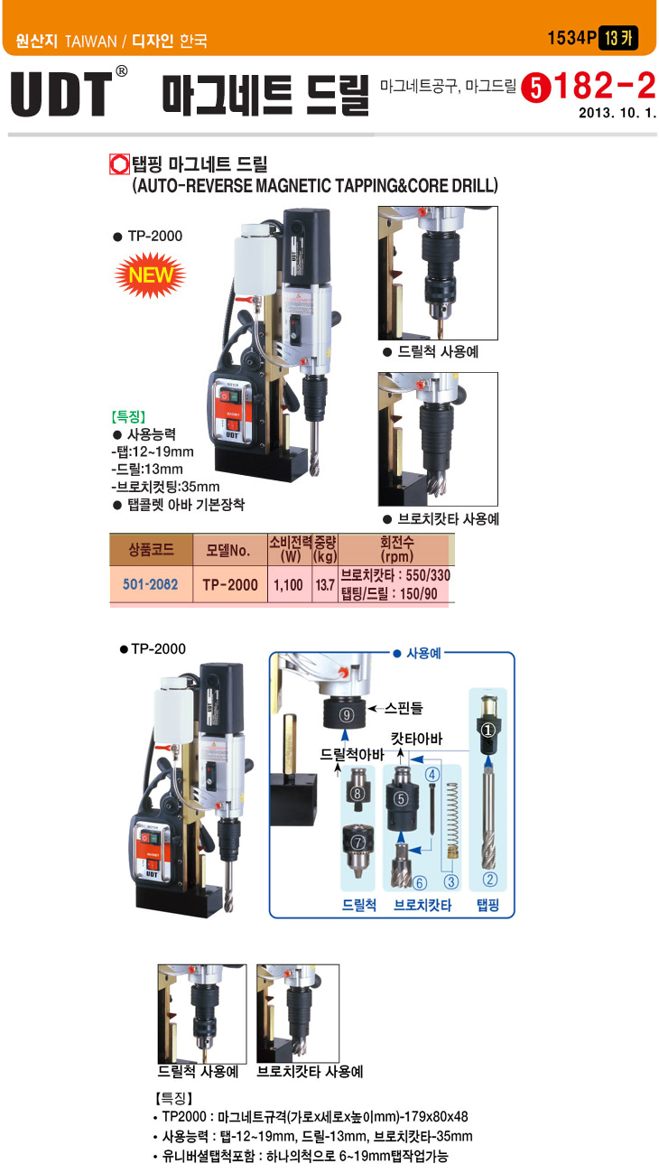 [UDT] ÅÇÇÎ ¸¶±×³×Æ® µå¸±(TP-2000)(AUTO REVERSE MAGNETIC TAPPING CORE DRILL)