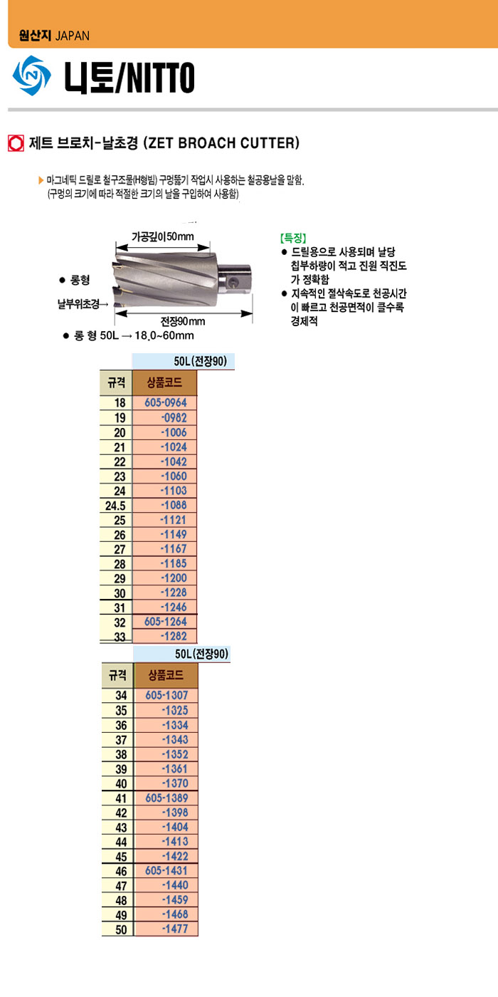 [´ÏÅä]Á¦Æ®ºê·ÎÄ¡-³¯Ãʰæ(Zet Broach Cutter)(19©ª, 50mm)(Nitto ¸¶±×³×ƽµå¸±¿ë)