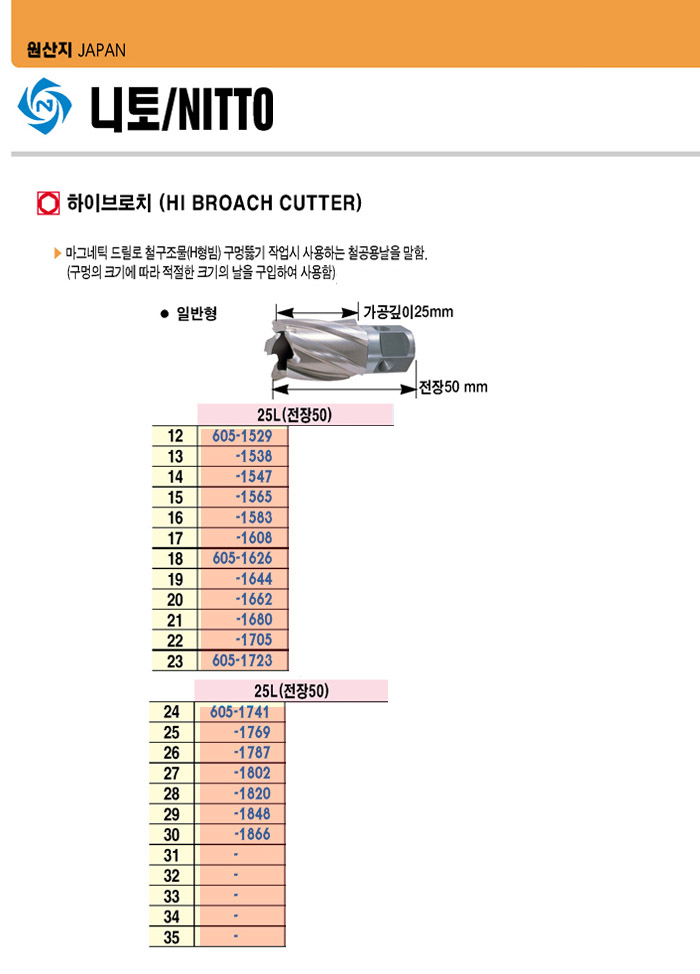 [´ÏÅä]ÇÏÀ̺ê·ÎÄ¡(Hi Broach Cutter)(21©ª, 25mm)(Nitto ¸¶±×³×ƽµå¸±¿ë)