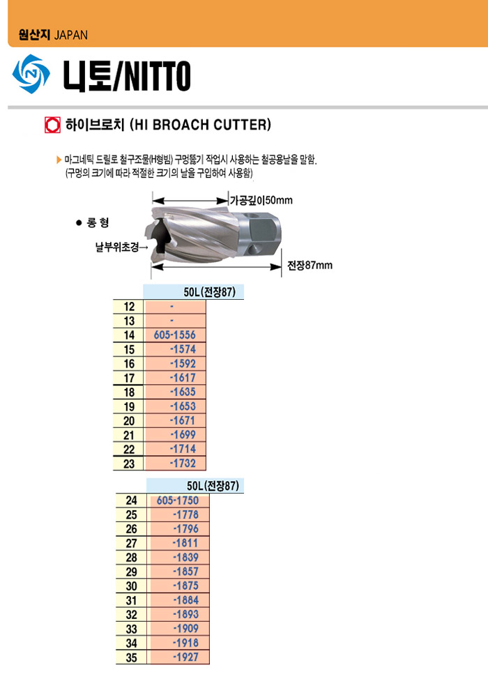 [´ÏÅä]ÇÏÀ̺ê·ÎÄ¡(Hi Broach Cutter)(20©ª, 50mm)(Nitto ¸¶±×³×ƽµå¸±¿ë)