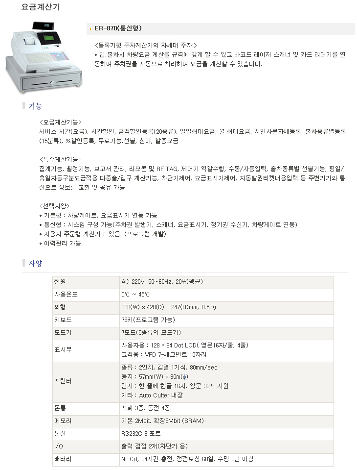 [WT] POSÇü ÁÖÂ÷¿ä±Ý°è»ê±â(ER-870 Åë½ÅÇü/ÁÖÂ÷Â÷´Ü±â ¿¬µ¿Çü)(POS Type Fee Calculation Terminal)