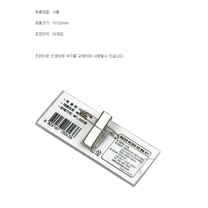 [¾ÆÆ®] ¾ÆÅ©¸±¸íÂû(70x25mm BOX) (M7025B)