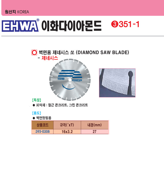 [ÀÌÈ­]º®¸é¿ë Á¦³×½Ã½º ½î(26ÀÎÄ¡x3.2T)(Diamond Saw Blade)(´ÙÀ̾Ƹóµå³¯)(¸¶¸¥³¯)