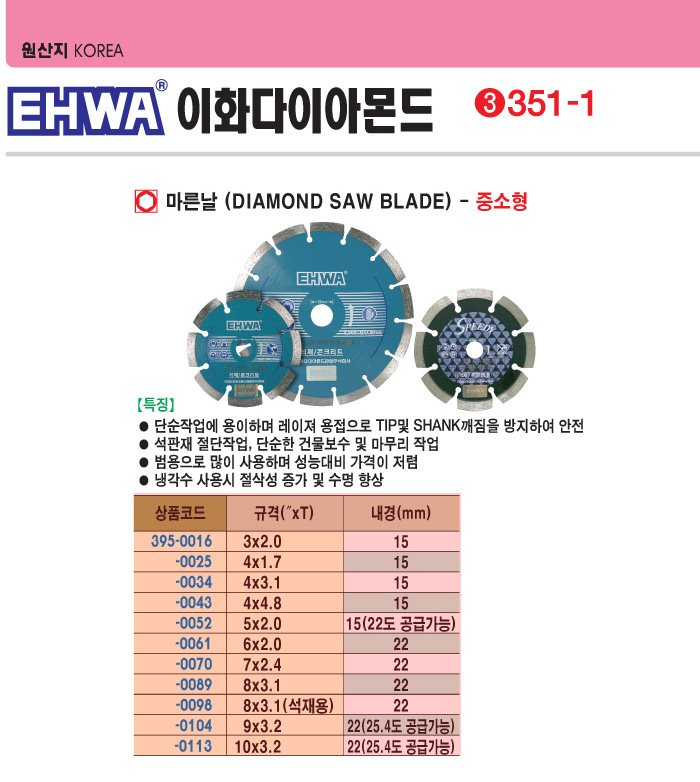 [ÀÌÈ­]¸¶¸¥³¯(9ÀÎÄ¡x3.2T, ³»°æ 22mm, Áß¼ÒÇü³¯)(Diamond Saw Blade)