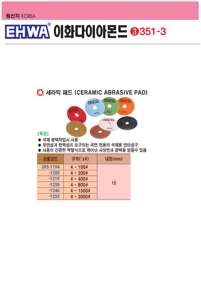 [ÀÌÈ­]¼¼¶ó¹ÍÆÐµå(4ÀÎÄ¡x200#, ³»°æ:15mm)(Ceramic Abrasive Pad)
