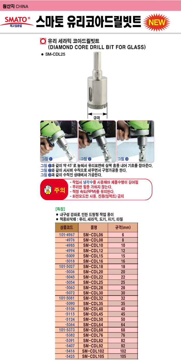 [½º¸¶Åä]À¯¸®ÄھƵ帱ºøÆ®(16ÆÄÀÌ)(Diamond Core Drill Bit for Glass)