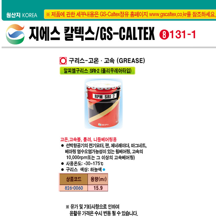 [GSĮŨ½º] °í¿Â/°í¼Ó ±¸¸®½º(RPM SRI 2, 15kg)(Grease)=>Á¦Ç°´ÜÁ¾!