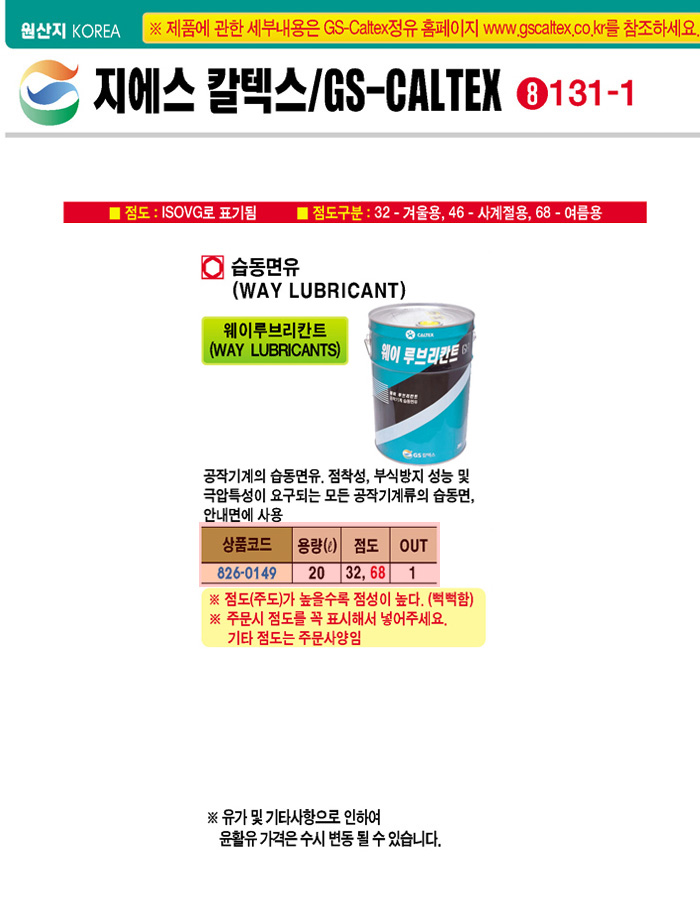 [GSĮŨ½º]½Àµ¿¸éÀ¯(20¸®ÅÍ, Á¡µµ:32, ¿þÀÌ·çºêÄ­Æ®)(Way Lubricant):´ÜÁ¾!!