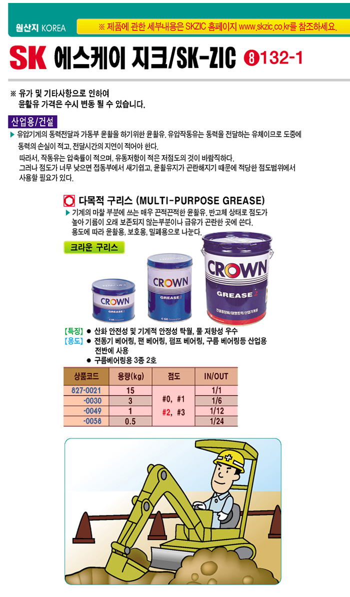 [SK]´Ù¸ñÀû±¸¸®½º(15Kg, CG 2)(Multi Purpose Grease)