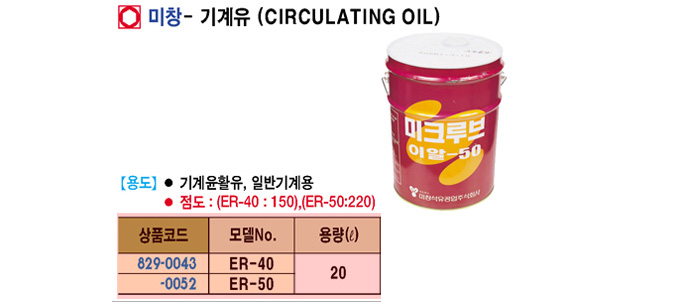 [¹Ìâ]±â°èÀ¯(ER-40, Á¡µµ:150, 20¸®ÅÍ)(Circulating Oil)
