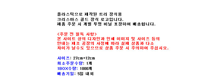 [DT]Å©¸®½º¸¶½º °ñµå Àå½Ä ·Î°í(Áß) (27cm x 12cm) (XTS0218)