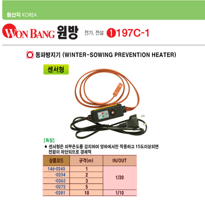 [¿ø¹æ] µ¿ÆÄ¹æÁö±â(5¹ÌÅÍ, ¼¾¼­Çü)(Winter Sowing Prevention Heater):ÀϽÃǰÀý!!