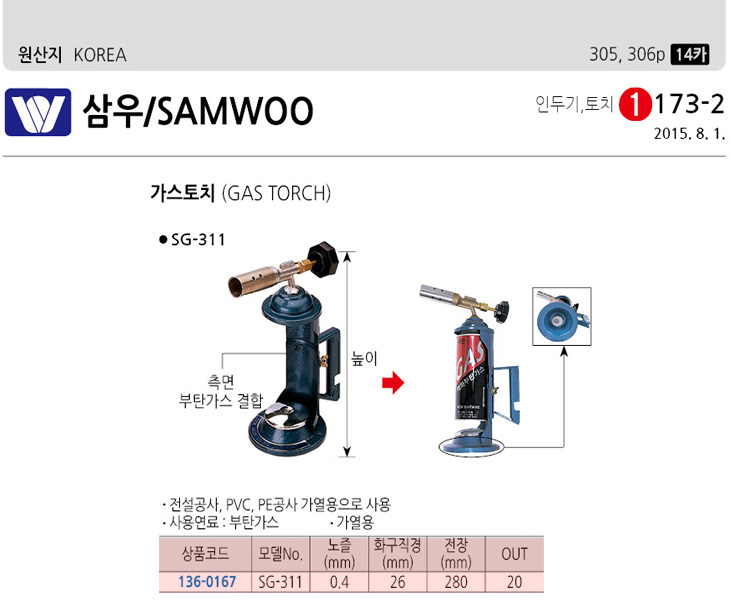 [»ï¿ì] °¡½ºÅäÄ¡(SG-311, ºÎź°¡½º, ³ëÁñ:0.4mm, È­±¸Á÷°æ:26mm, ÀüÀå:280mm)(Gas Torch)