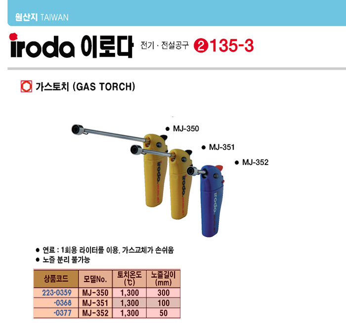 [À̷δÙ/Iroda] °¡½ºÅäÄ¡(MJ-350, ³ëÁñ±æÀÌ:300mm, ÀÏȸ¿ë ¶óÀÌÅÍÀåÂø)(GAS TORCH)