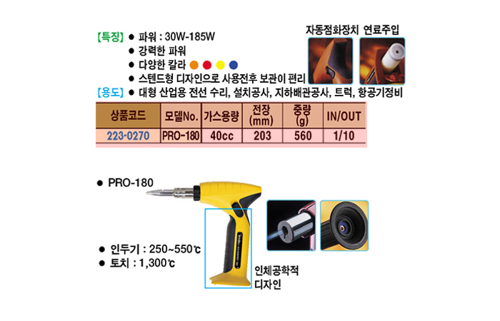 [À̷δÙ/Iroda]°¡½ºÀεαâ(PRO-180, ¿Âµµ¹üÀ§:250~550µµ)(GAS SOLDERING IRON)