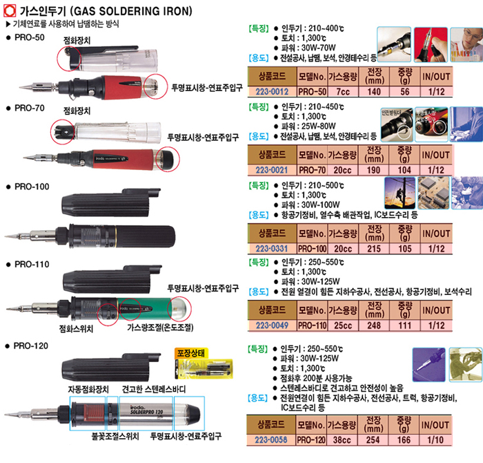 [À̷δÙ/Iroda]°¡½ºÀεαâ(PRO-50, ¿Âµµ¹üÀ§:210~400µµ)(GAS SOLDERING IRON)