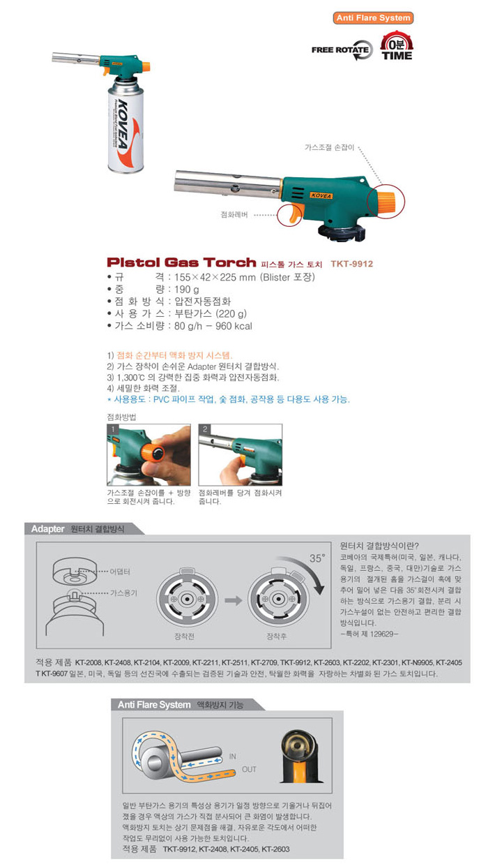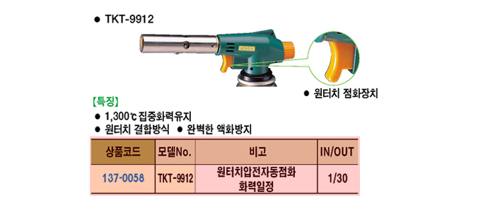 [ÄÚº£¾Æ]ÇǽºÅç °¡½ºÅäÄ¡(ÀÚµ¿)(TKT-9912, ¿øÅÍÄ¡)(Pistol Gas Torch Automatic Type)