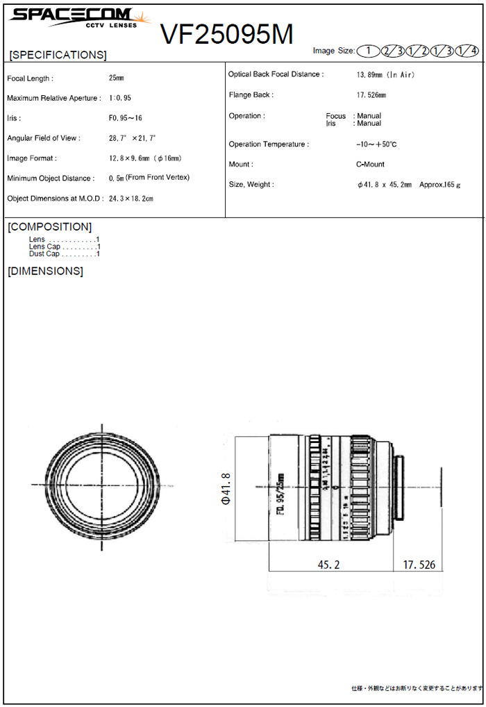 [SPACECOM]High-Speed Camera Lenses JF25095M 1¡± 25mm(Bright Lens/ÀúÁ¶µµ·»Áî)(°ßÀû¿äû)
