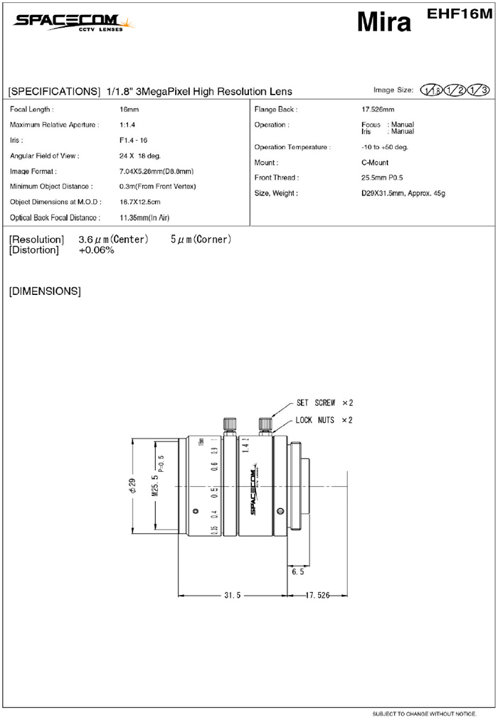 [SPACECOM]3.0 Mega Pixel Lens EHF16M 16mm 1/1.8"(°ßÀû¿äû)