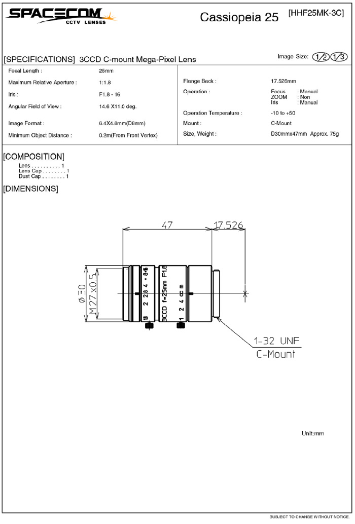 [SPACECOM]1.45Mega Pixel Lens for 3CCD HHF25MK3C 25mm C-mount 1/2"(°ßÀû¿äû)
