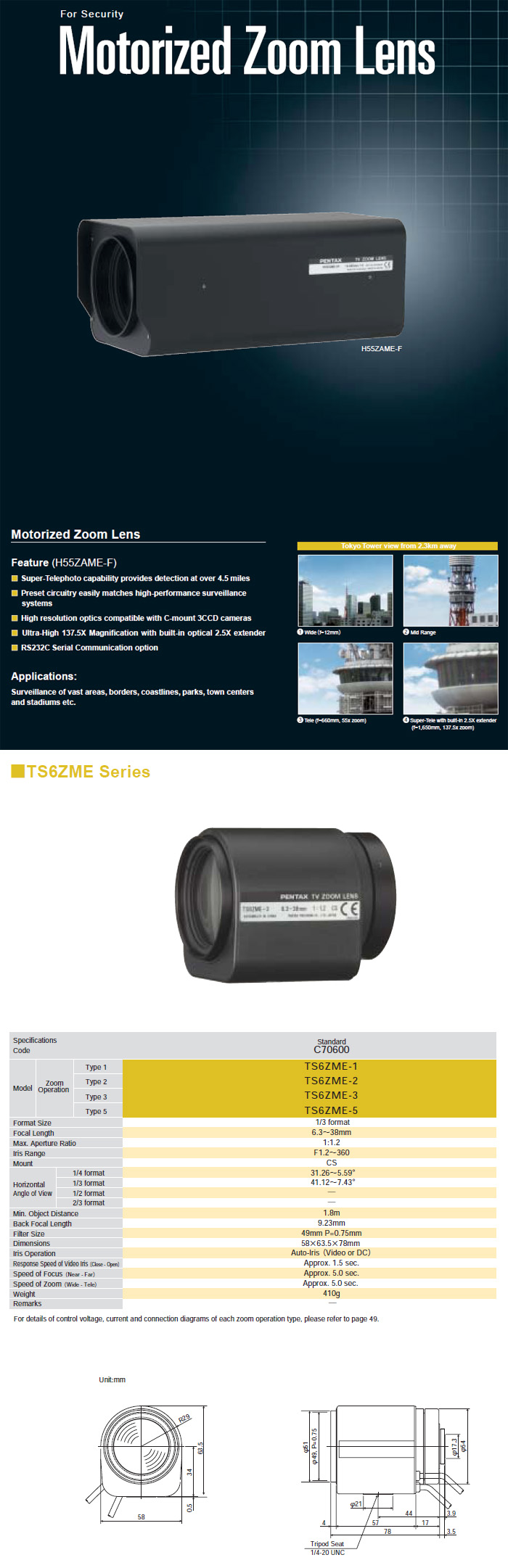 [PENTAX]Motorized Zoom Video IRIS Lens PENTAX TS6ZME(C70600) 6.3-38mm 1/3ÀÎÄ¡(°ßÀû¿äû)