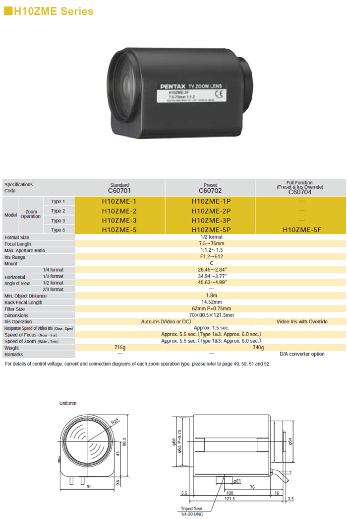 | The PENTAX CCTV Lens provides quality images with proven reliability! |