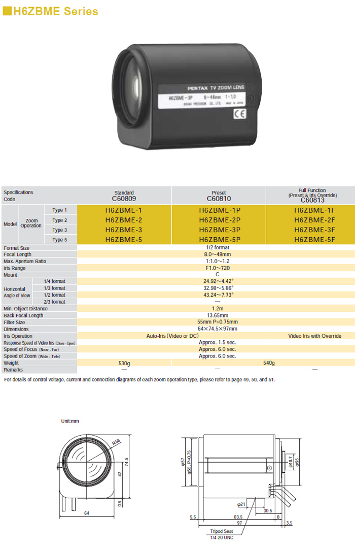 | The PENTAX CCTV Lens provides quality images with proven reliability! |