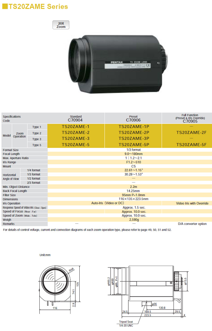 | The PENTAX CCTV Lens provides quality images with proven reliability! |