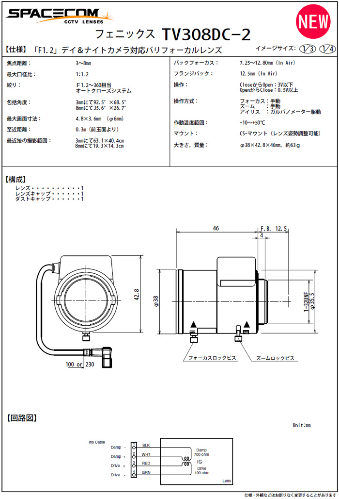 [SPACECOM]Day and Night»ç¾ç TV308DC-2 3-8mm DC IRIS 1/3ÀÎÄ¡(°ßÀû¿äû)