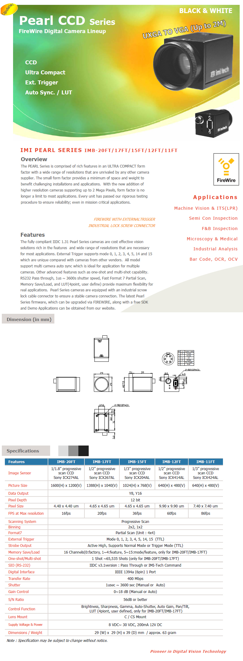 [IMI]PEARL CCD¹®ÀÚÀνÄÄ«¸Þ¶óVISION¿ë Èæ¹éÄ«¸Þ¶ó(640x480)(IMB-12FT/11FT)(°ßÀû¹®ÀÇ)