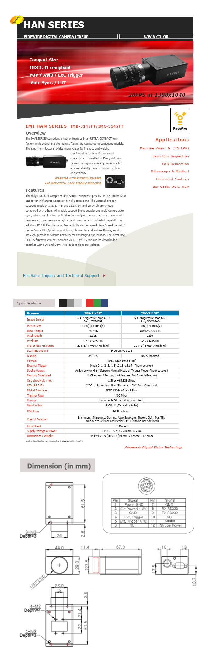 [IMI]HAN CCD Èæ¹é¹®ÀÚÀνÄÄ«¸Þ¶ó IMB-3145FT(1388x1040)(°ßÀû¹®ÀÇ)