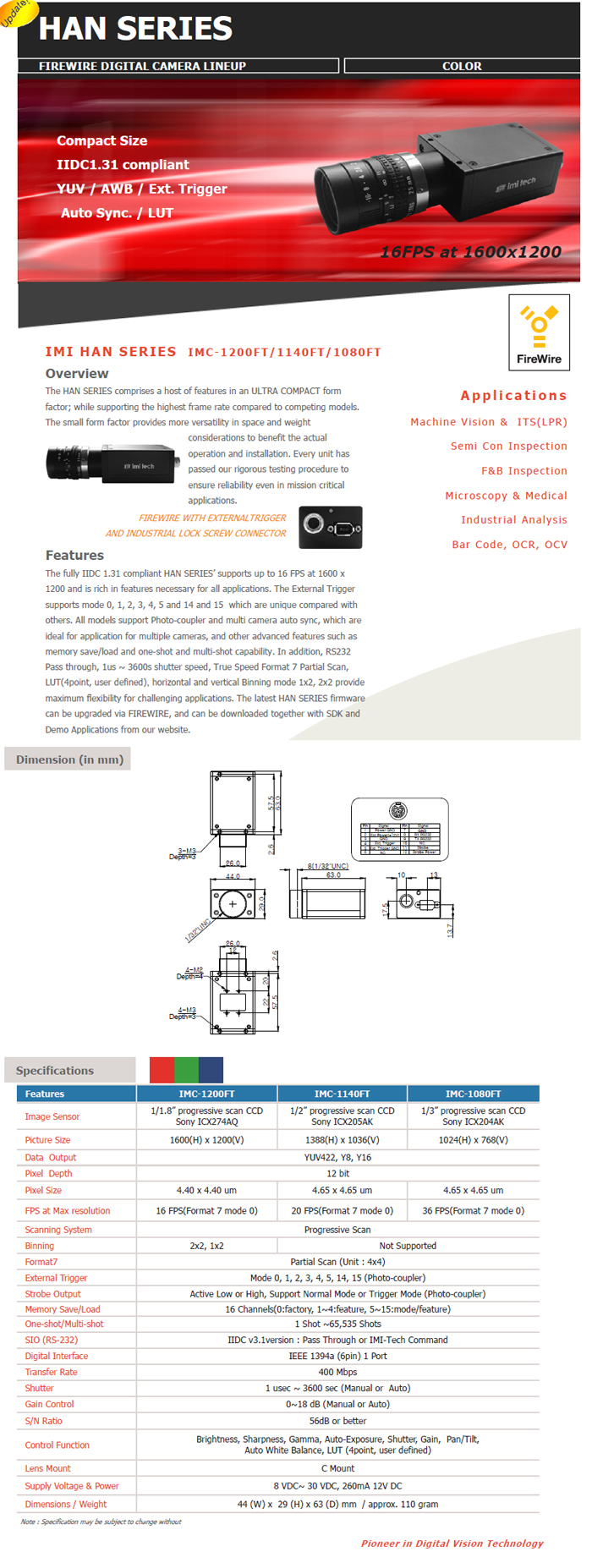 [IMI]HAN CCD Ä÷¯¹®ÀÚÀνÄÄ«¸Þ¶ó IMC-1140FT(1388x1040)(°ßÀû¹®ÀÇ)-Á¦Ç°´ÜÁ¾,ǰÀý!