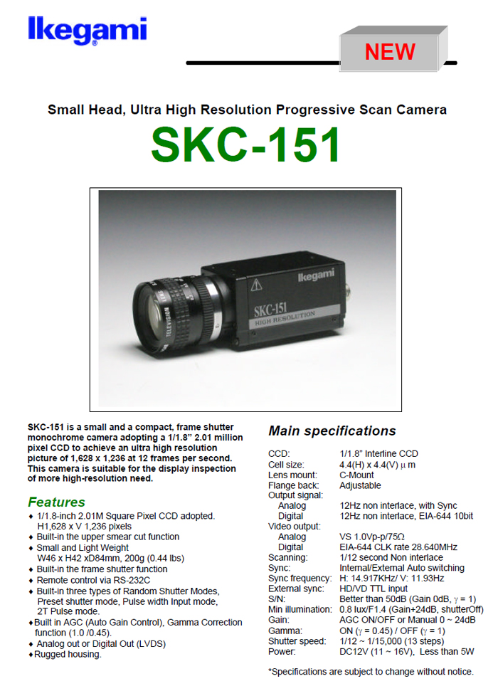 Small Head, Ultra High Resolution Progressive Scan Camera