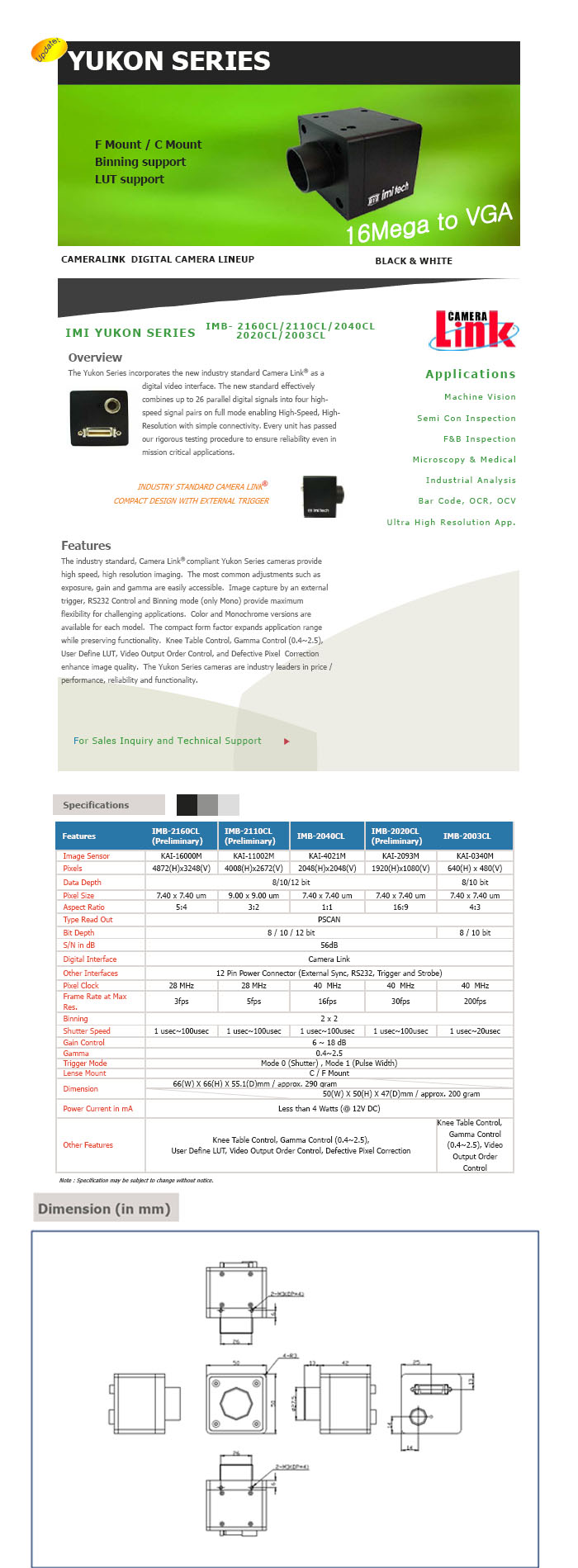 [IMI]Yukon CCD Èæ¹é¹®ÀÚÀνÄÄ«¸Þ¶ó IMB-2040CL(2048x2048)(°ßÀû¹®ÀÇ)=>´ÜÁ¾!