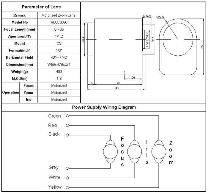 [RICOM]Motorized Zoom Lens SP0636Z/RB063GJ 1/3ÀÎÄ¡ 6-36mm 3Motor(°ßÀû¿äû)