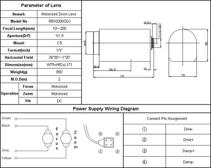 [RICOM]Motorized Zoom Lens RB10200GDJ 1/3ÀÎÄ¡ 10-200mm DC IRIS(°ßÀû¿äû)