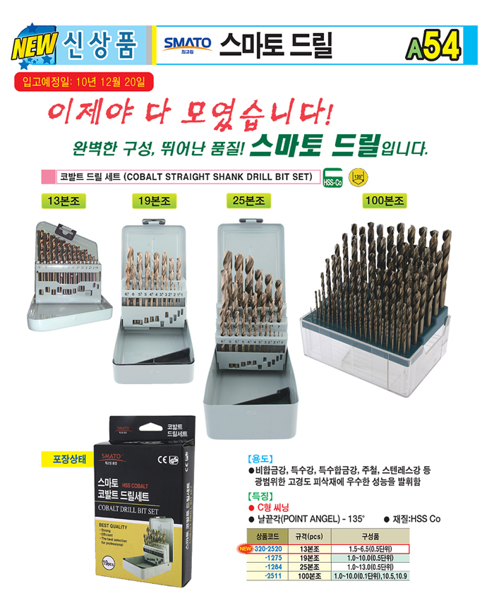[SMATO] ÄÚ¹ßÆ® µå¸± ¼¼Æ® (COBALT STRAIGHT SHANK DRILL BIT SET)