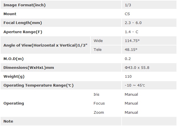 [TOKINA]Vari-Focal Lenses TVR2314(2.3 - 6.0mm) 1/3ÀÎÄ¡ (°ßÀû¿äû)