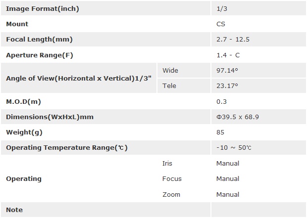 [TOKINA]Vari-Focal Lenses TVR2714(2.7 - 12.5mm) 1/3ÀÎÄ¡ (°ßÀû¿äû)