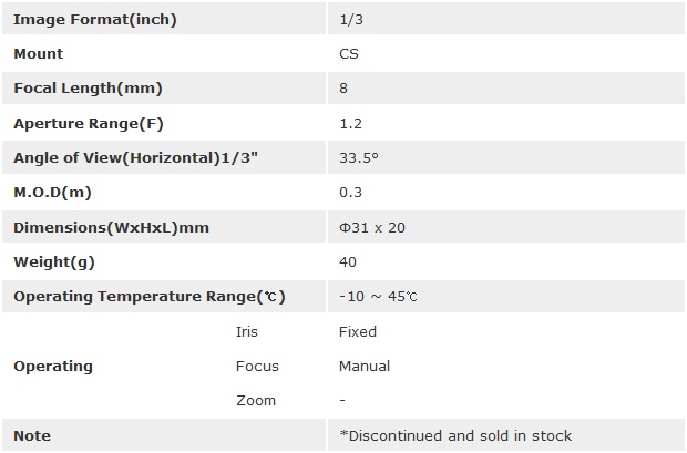 [TOKINA]Mono-Focal(fixed) Lenses TC0812NI(8mm) 1/3ÀÎÄ¡ (°ßÀû¿äû)