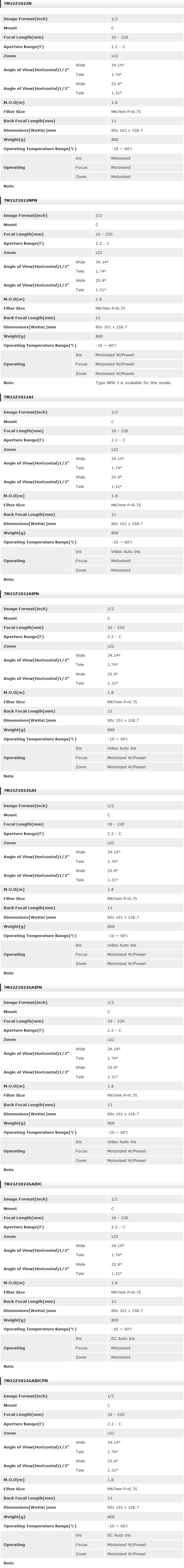 [TOKINA]Standard Motorized Zoom Lenses TM22Z1022GAIPN(10 - 220mm) 1/2ÀÎÄ¡ (°ßÀû¿äû)