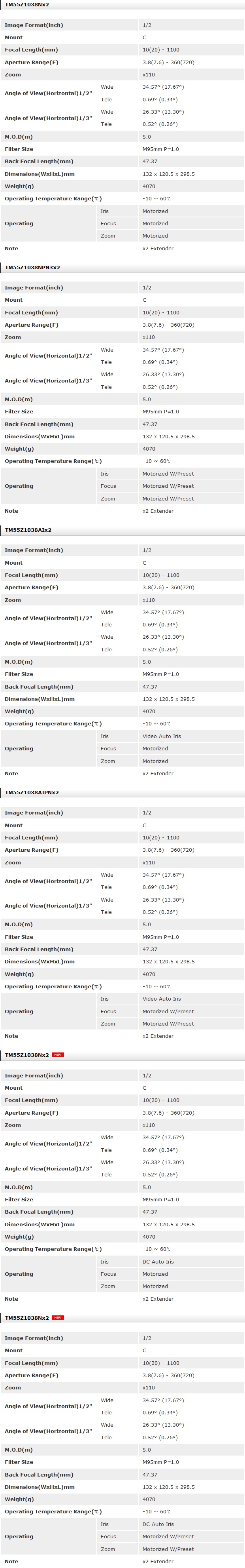 [TOKINA]Standard Motorized Zoom Lenses TM55Z1038NPN3x2(10(20) - 1100mm) 1/2ÀÎÄ¡ (°ßÀû¿äû)