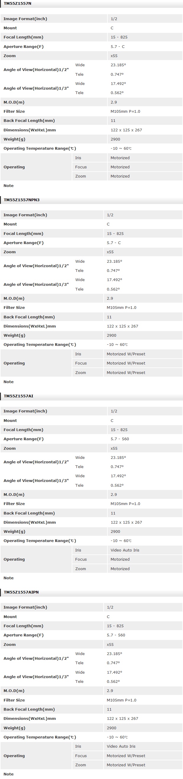[TOKINA]Standard Motorized Zoom Lenses TTM55Z1557NPN3(15 - 825mm) 1/2ÀÎÄ¡ (°ßÀû¿äû)