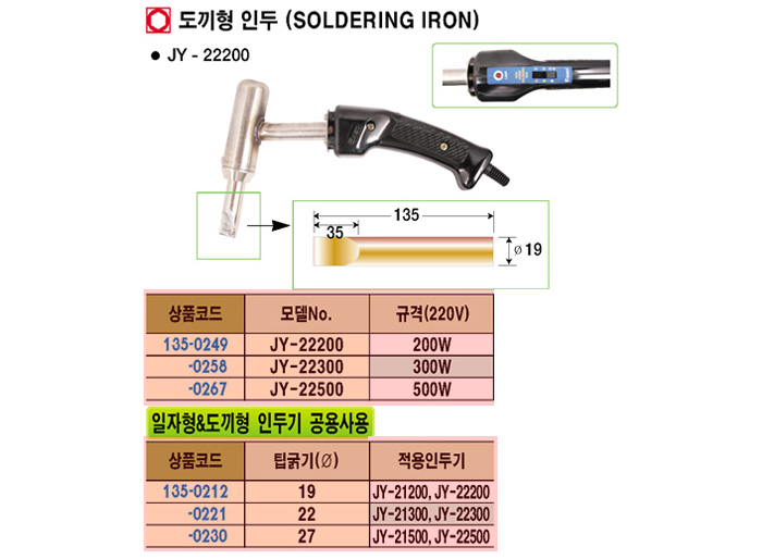 [Exso]ÀÏÀÚÇü ¹× µµ³¢Çü ÀÎµÎ±â ÆÁ(´ëÇü, JY21200 ¹× JY22200, 19ÆÄÀÌ)(Soldering Iron)