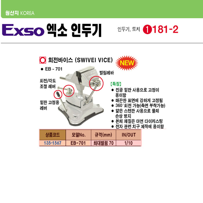 [Exso]ȸÀü¹ÙÀ̽º(EB-701, ÃÖ´ë 70mm)(Swivei Vice):´ÜÁ¾!!