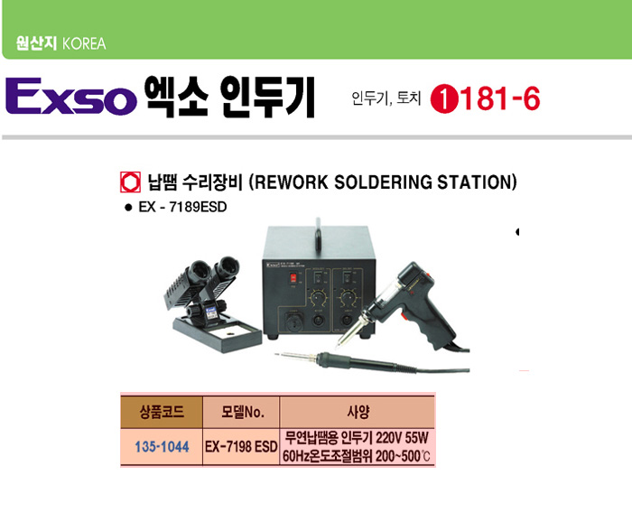 [Exso]³³¶«¼ö¸®Àåºñ(EX-7198 ESD, 200-500µµ, AC220V 55Watt)(Rework Soldering Station)