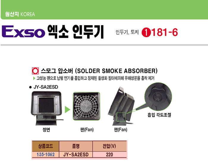 [Exso]½º¸ð±× ¾Ð¼Ò¹ö(JY-SA2ESD, 220V)(Solder Smoke Absorber)