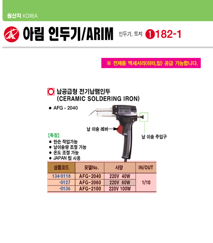 [ARIM]³³°ø±ÞÇü Àü±â ³³¶«Àεαâ(AFG-2040, 220V 40Watt)(Soldering Iron)