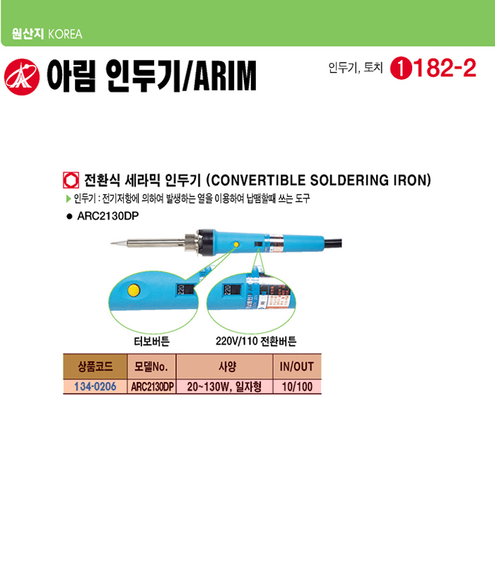 [ARIM]Àüȯ½Ä ¼¼¶ó¹Í Àεαâ(ARC2130DP, 20-130Watt, ÀÏÀÚÇü)(Converible Soldering Iron)