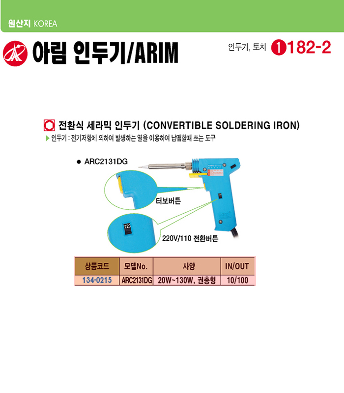 [ARIM]Àüȯ½Ä ¼¼¶ó¹Í Àεαâ(ARC2131DG, 20-130Watt, ±ÇÃÑÇü)(Converible Soldering Iron)
